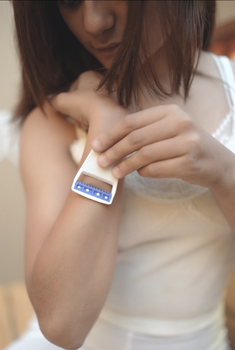 Ribbed handle ensures a steady and efficient grip on the razor.Smoothly follows the natural contours of the body.